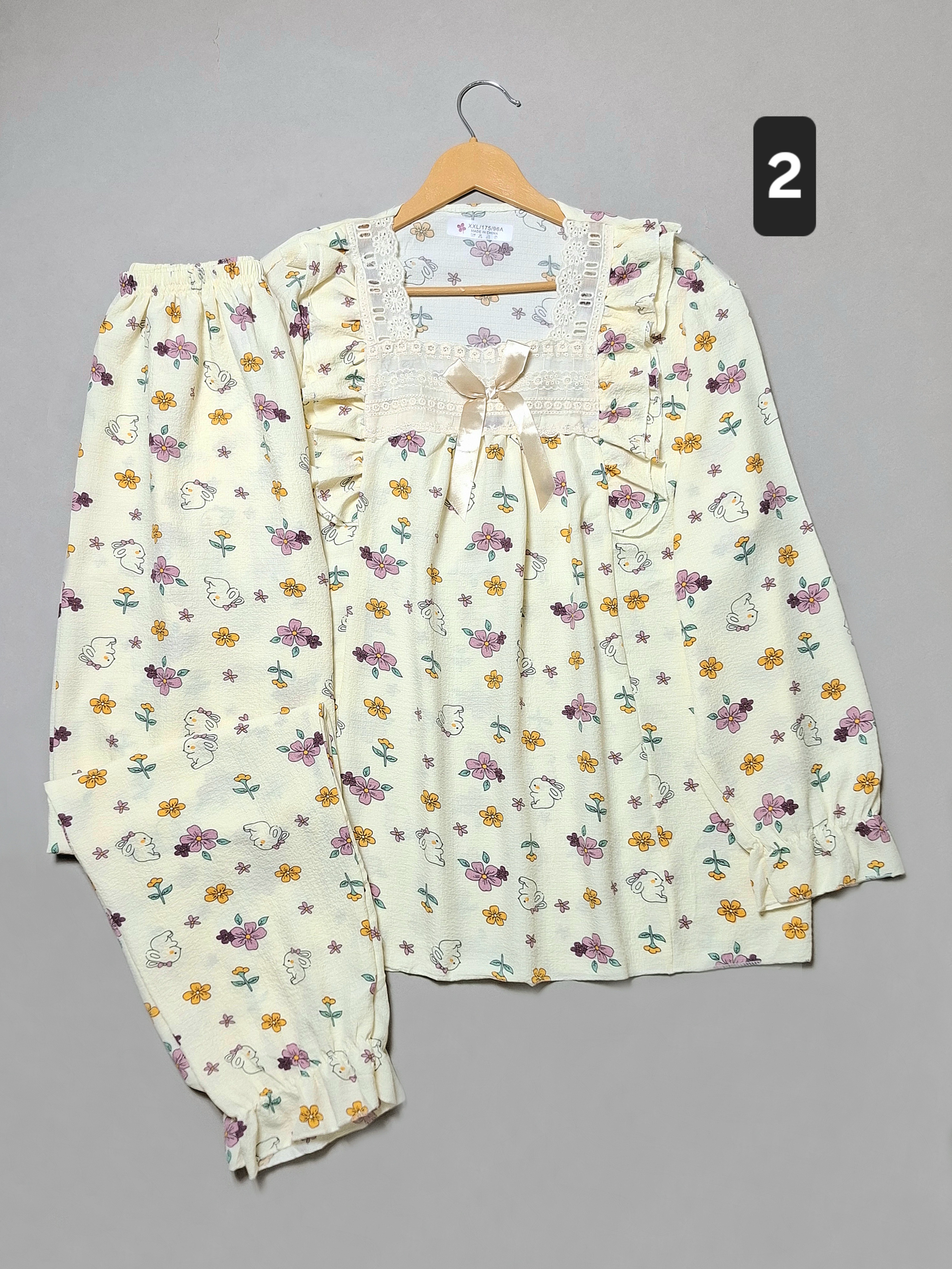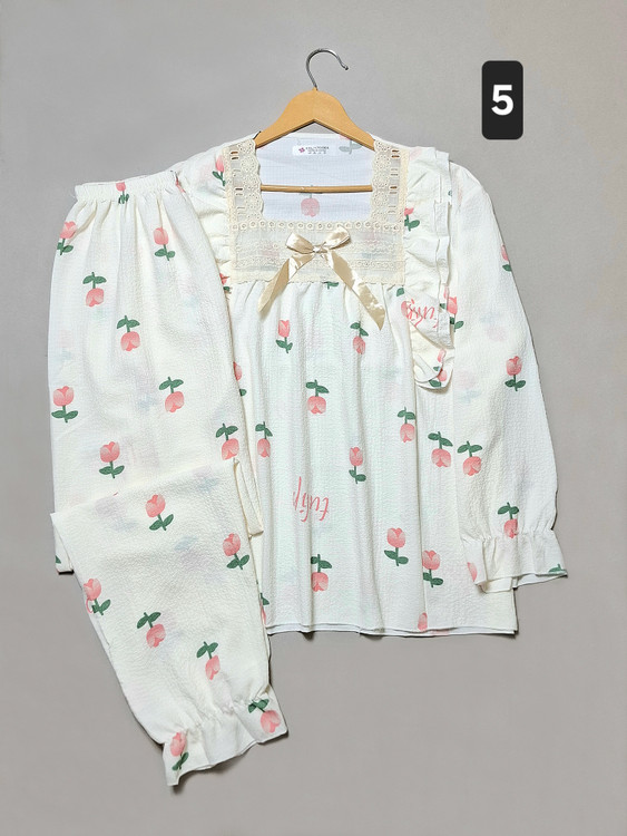 ست بلوز شلوار وارداتی یقه گیپور چیندار 🥰