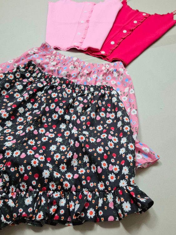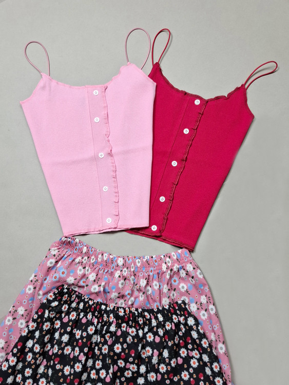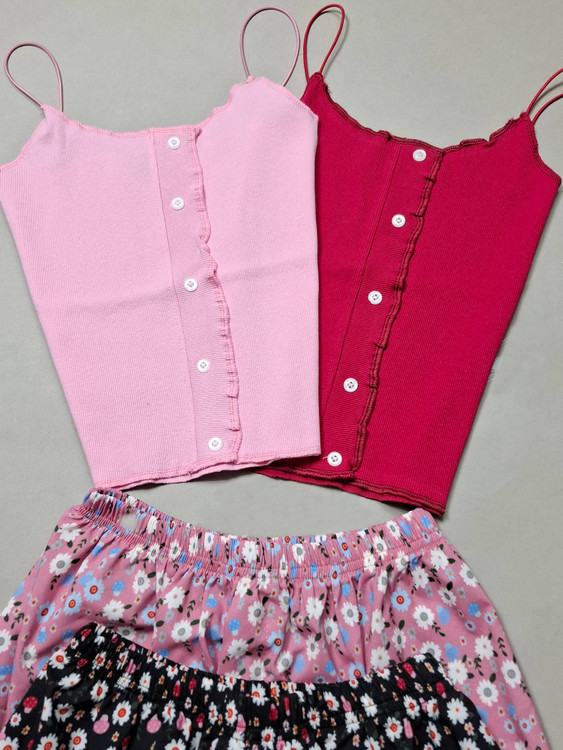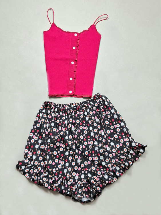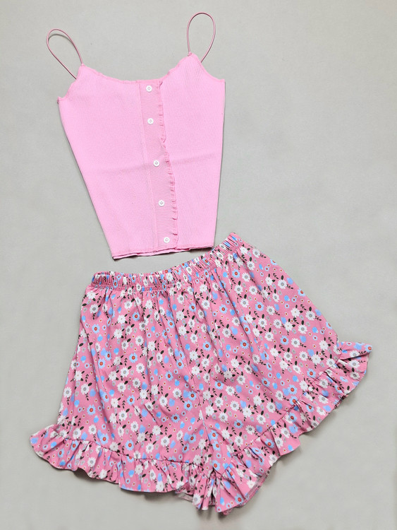 ست تاپ شلوارک بند ماکارون